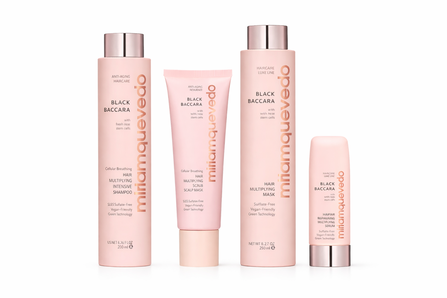 Miriam Quevedo Black Baccara Hair Multiplying Intensive Shampoo er en ultraintensiv shampoo for grundig rens og detox. Inneholder en høy konsentrasjon av ingredienser som gir en boost til hårets vekstsyklus for et sterkere og tykkere hår. Den hindrer vekstforstyrrelser relatert til miljø og livstil og stress, og bidrar til å redusere forekomsten av grå hår. Hårsekkens riktige funkjson blir bevart, noe som bidrar til å redusere og forhindre hårtap, samt stimulere til økt hårvekst. Forbedring av mikrosirkulasjonen i hodebunnen vil føre til at essensielle næringsstoffer kan levers direkte til hjertet av hårsekken, noe som er kritisk for at hårveksten skal fungere optimalt. Shampooen hjelper med å regulere talg, i tillegg til at følsomheten i hodebunnen blir roet ned. Dette vil resultere i mindre kløe og irritasjon.